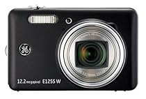 Broaden your view with the all new GE E1255W. With a spacious 3-inch high-resolution LCD screen with auto adjust brightness, photo playback is a delightful experience. Featuring a generous 12-megapixel resolution, 5x optical zoom, 4.5x digital zoom, and a 28mm wide angle lens.The E1255W also provides great extras such as pan camera panorama produced by panning the camera across to create a seamless panoramic picture, auto scene detection, smile detection, face detection, in-camera red-eye removal, electronic image stabilization and Quick Time Motion JPEG movie recording. It even has an SD/SDHC memory card slot expandable up to an incredible 8 gigabytes. Additional specs include Focal length of 5.2mm (wide) to 26.00mm (Tele) which is the 35mm film equivalent of 28mm (wide) to 140mm (Tele), F number of F3.3 (Wide) to F5.2(Tele), Normal focusing range of 60 cm, Macro of 5cm-80cm (Wide) to 120cm (Tele),Shooting modes of Auto, Manual, ASCN, Image Stabilization, Movie, Scene (Sport, Children, Indoor, Leaf, Snow, Sunset, Fireworks, Glass, Museum, Landscape, Night Landscape, Night Portrait, Portrait), and Panorama, Auto ISO sensitivity of 1600. Pictbridge compatability,ExifPrint support, multi-language support, USB 2.0 and AV out (proprietary connector) jacks. This products ships with rechargeable lithium-ion batteries, battery charger, USB cable, AV cable, Wrist Strap, CD-ROM, Arcsoft Photo Impression 6 photo mangement software, Manuals, Quick Start Guide, and Warranty Card.