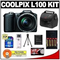 Nikon Coolpix L100 10 Megapixel Digital Camera (Matte Black) with 15x Optical Zoom + AA Batteries + 4GB Card + Case + Accessory Kit