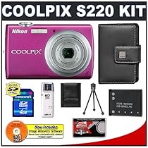 Nikon Coolpix S220 10 Megapixel Digital Camera (Magenta) with 3x Optical Zoom + EN-EL10 Battery + 4GB Card + Leather Case + Accessory Kit