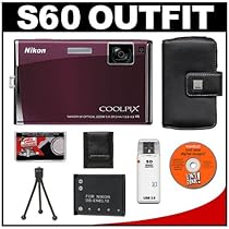 Nikon Coolpix S60 10 Megapixel Digital Camera (Burgundy) with 5x Optical Zoom + EN-EL10 Battery + Leather Case + Accessory Kit