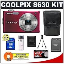 Nikon Coolpix S630 12 Megapixel Digital Camera (Ruby Red) with 7x Optical Zoom + EN-EL12 Battery + 8GB Card + Leather Case + Accessory Kit